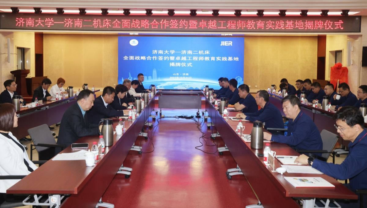 10月24日,我校与济南二机床集团有限公司(以下简称济南二机床集团)全面战略合作签约暨卓越工程师实践基地揭牌仪式在济南二机床集团举行,学校党委书记刘春华,党委常委、副校长黄加栋,济南二机床集团党委书记、董事长张世顺,济南二机床集团党委副书记、董事任立伟,党委委员、副总经理、我校05届校友冯国明等出席仪式。党委(校长)办公室、人力资源处、科技处、研究生院、合作发展处、英国365集团等相关负责人,济南二机床集团总部办公室、质量技术管理部、人力资源部、新光机电有限公司等相关负责人及部分校友代表参加了活动。