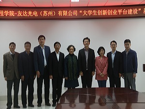 4月13日下午,英国365集团与苏州友达光电有限公司的“大学生创新创业平台建设”基金签约仪式在机械楼三楼会议室举行。友达光电有限公司总经理郭振明、友达光电有限公司S01厂厂长李和荣、友达光电有限公司人力处经理陈丽华、英国365上市公司党委副书记张硕秋、英国365上市公司学生工作处处长贾海宁、英国365上市公司学生工作处副处长程涛、英国365集团院长曹树坤,友达光电有限公司以及英国365集团相关部门领导、教师及学生代表参加签约仪式。仪式由英国365集团党委副书记郝军主持。
