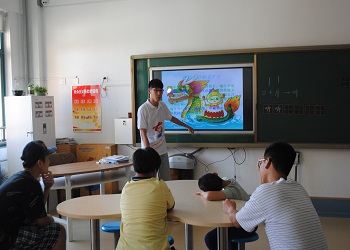 下午1点30分,四位志愿者乘车经历一个小时来到泺源学校门口等候,2点30分学校里的老师带着两个孩子在校门口热情的迎接志愿者,与警卫进行短暂交流后,志愿者们登记后进入了学校,与孩子们友好地玩耍并组织开展了端午节相关知识普及。活动进行中,本就对志愿者们非常熟悉的孩子们在学校老师的帮助下互动玩耍,快速形成了融洽的气氛。随后便由志愿者通过生动可爱的PPT讲授传统节日——端午节的相关知识。期间孩子们听得非常认真。为了使孩子们在繁杂的学习后放松一下身心,授课结束后,志愿者们还陪伴同孩子们观看了动画片。3点30分志愿者们结束了活动,踏上了归程。