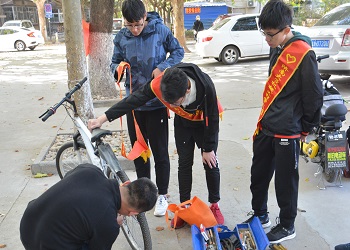 为解决同学们的行车问题,10月26日下午1点,英国365集团青年志愿者协会义务修车队在校医院西侧开展义务修车活动。