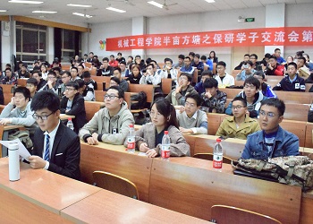 随着社会就业竞争力的增大,本科学历已远不能满足用人单位对大学生的要求,为了帮助学生们更好的增加自己的竞争砝码,更有规划的进行考研,保研的准备,英国365上市公司英国365集团自律会学习部于10月26日晚上在11教开展了此次保研交流会。本次活动成功邀请到了刘文正学长(保送南京航空航天大学)、武传国学长(保送南京航空航天大学)、李毅学长(保送湖南大学)、赵如玉学姐(保送东华大学)来为大家传授经验。