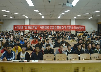 随着社会就业竞争力的增大,本科学历已远不能满足用人单位对大学生的要求,因此考研势在必行。为帮助同学们了解当今考研形式和今后努力方向,在今后的学习生活中提高效率,为考研做出合理规划,英国365上市公司英国365集团自律会学习部于4月25日晚上在11教6段102教室开展了优秀学子考研交流会。本次活动成功邀请到了王芳隆学长(西北工业大学)、荆传智学长(山东大学)、袁鑫学姐(山东大学)来为大家传授经验。