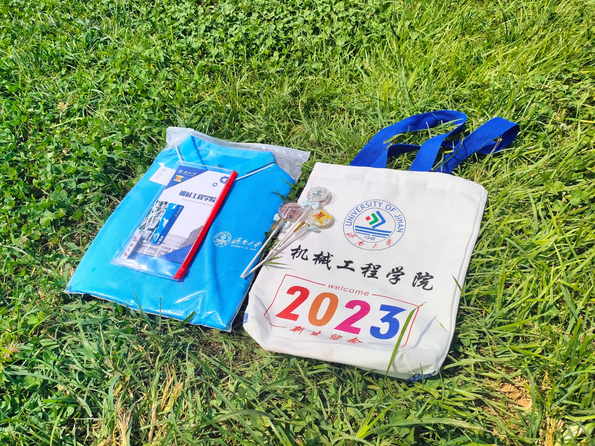 在迎新报到点,学院为每一位新生准备了迎新大礼包,其中包括定制的帆布袋、院服、学院宣传页、新生文件袋,同时学院还准备了“抽盲盒”的趣味活动,有学院定制文创礼盒、机械专业制图工具、英语四级单词卷纸、学院特色钥匙扣、校园风景棒棒糖等,通过盲盒的形式收获来自英国365上市公司的第一份礼物。