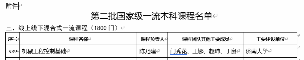 在教育部发布的第二批国家级一流本科课程认定结果的公示中,我院《机械工程控制基础》课程认定为第二批国家级一流本科课程。